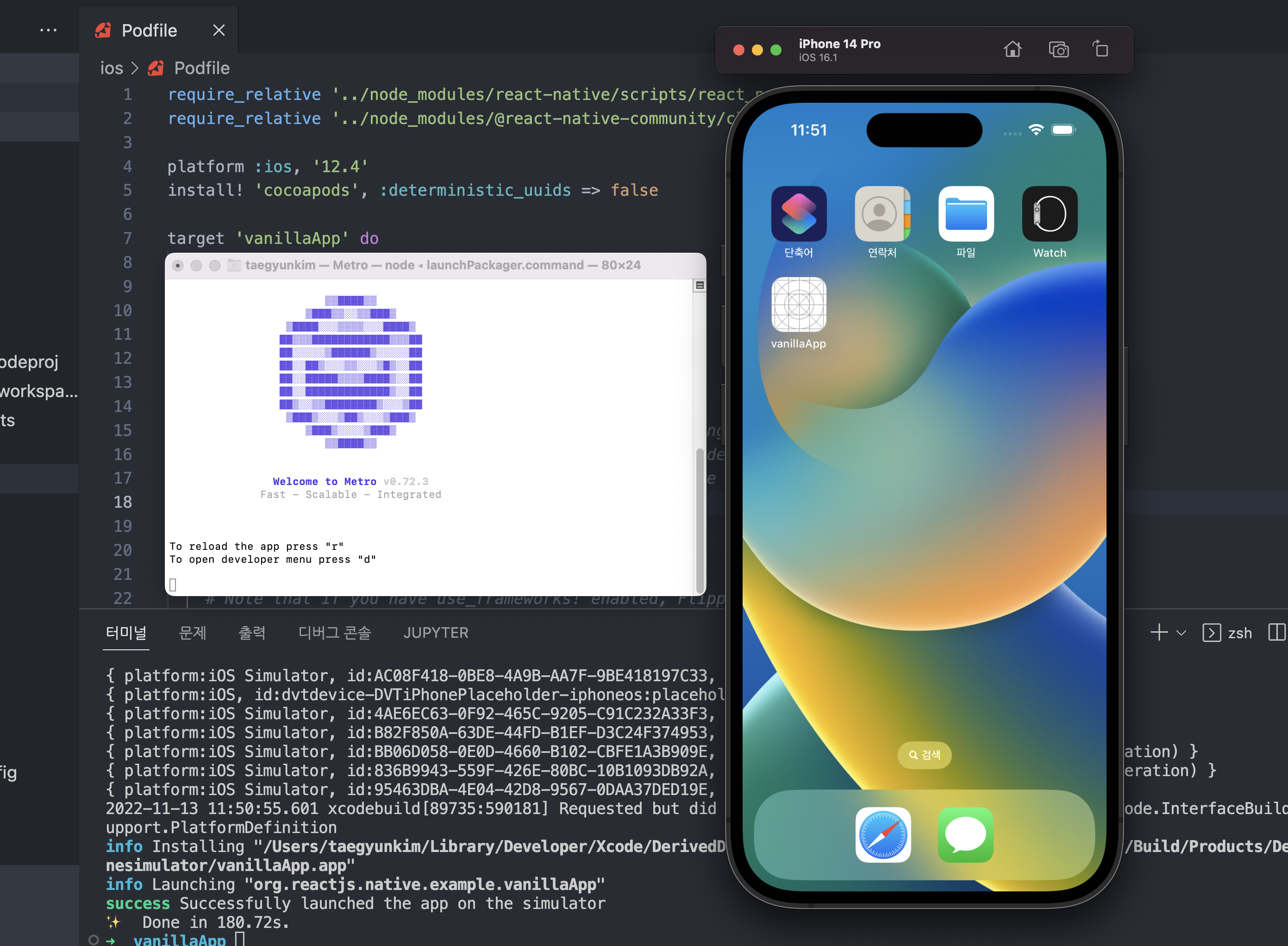 내 개인 맥북(19년 intel pro)으로 RN을 돌렸던 프로젝트 버전이 0.67이었고, 최근에 프로젝트가 생겨 0.70에 맞게 공식문서와 내 환경설정에 비교한 뒤 구동을 해보았다.