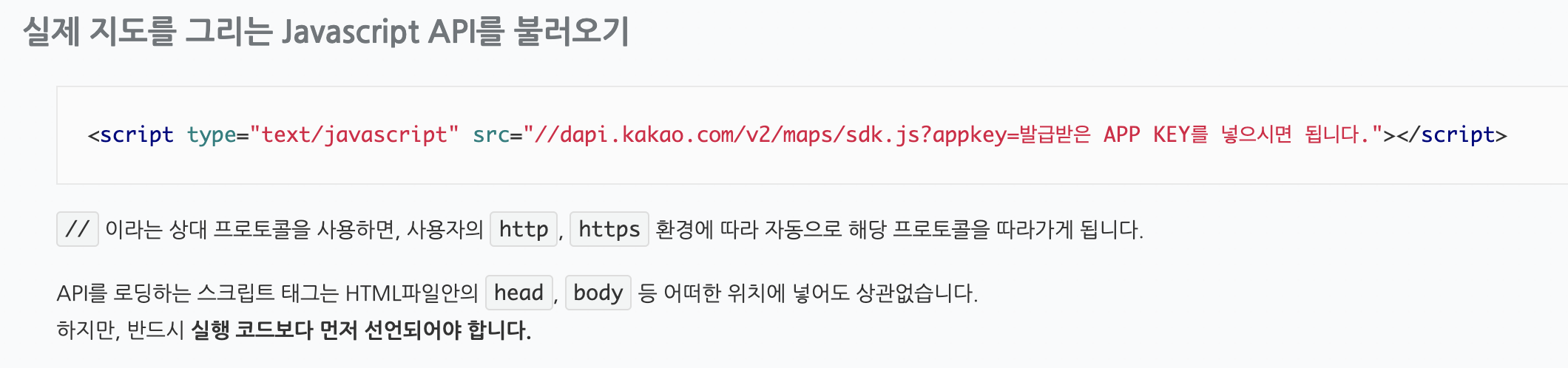 <script type="text/javascript" src="//dapi.kakao.com/v2/maps/sdk.js?appkey=발급받은 APP KEY를 넣으시면 됩니다."></script>