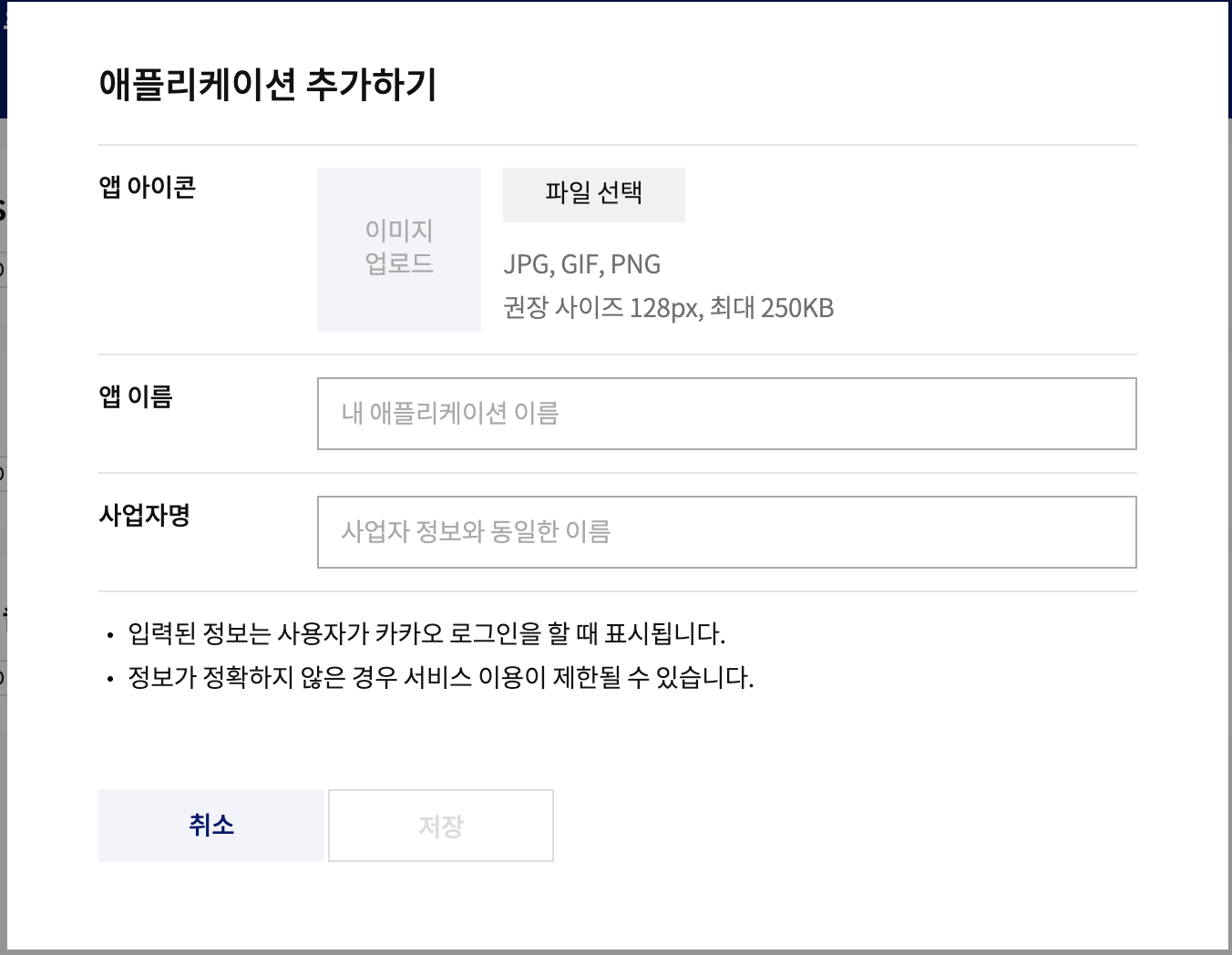 앱 이름과 사명자명을 기재해야하는데, 추후 수정도 되는 부분이니 적당하게 기입해주세요.