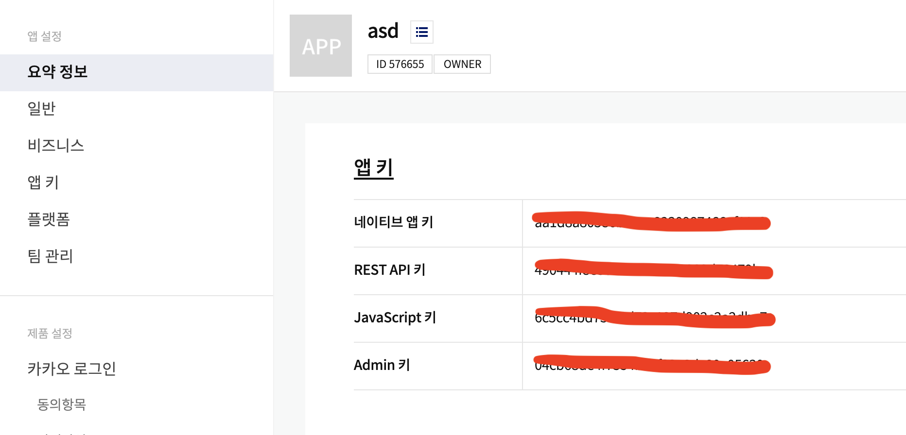 "앱 설정 > 요약 정보"에 JavaScript 키에 키를 복사하시면 키 발급은 끝입니다!