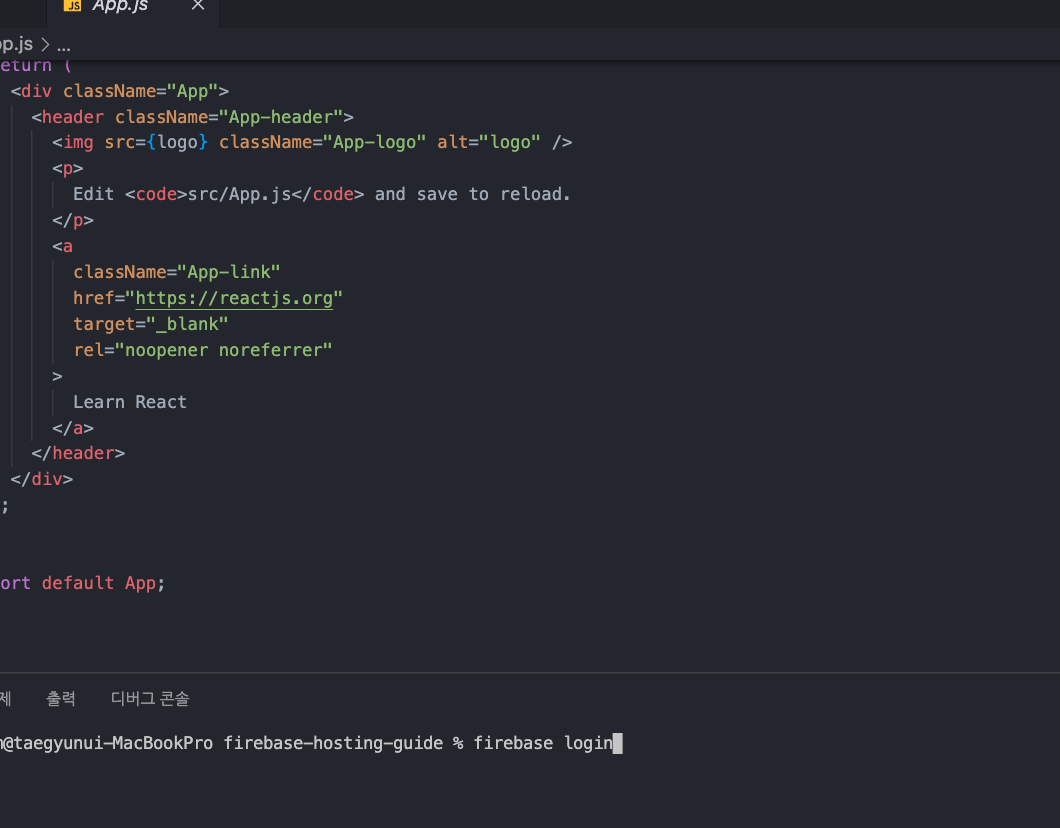 (이전에 firebase login을 한 적이 있었고, 에러가 뜬다면 "firebase login --reauth"를 해주자. 토큰을 재갱신하는 과정이다.)