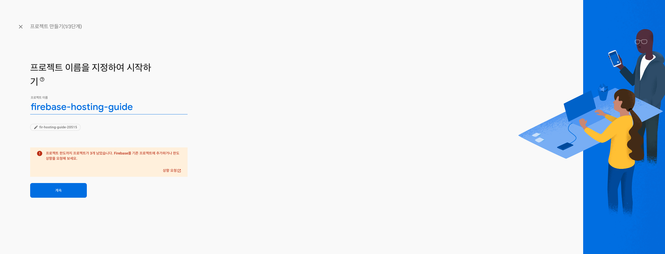 적당한 프로젝트 네이밍을 등록해주고 "계속" 버튼을 클릭한다.