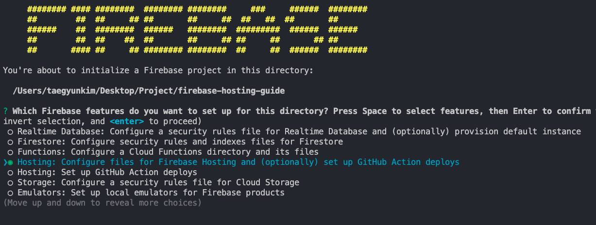 로그인이 완료되었다면, "firebase init"을 입력하자.